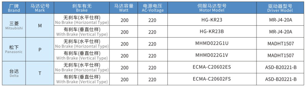 搭配伺服马达一览表